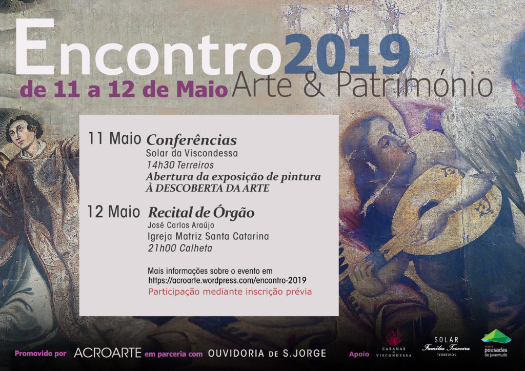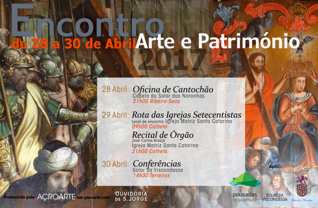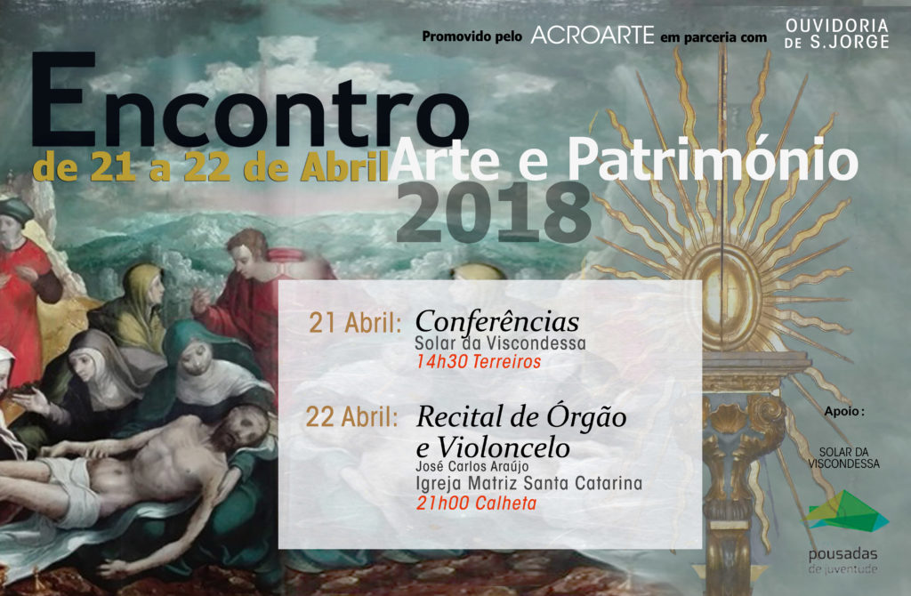 ENCONTRO ARTE & PATRIMÓNIO É promovido desde 2016 pelo ACROARTE, ocorrendo anualmente na Ilha de São Jorge, geralmente no mês de abril. ENCONTRO ARTE & PATRIMÓNIO 2024 Edições Anteriores Publicações Galeria